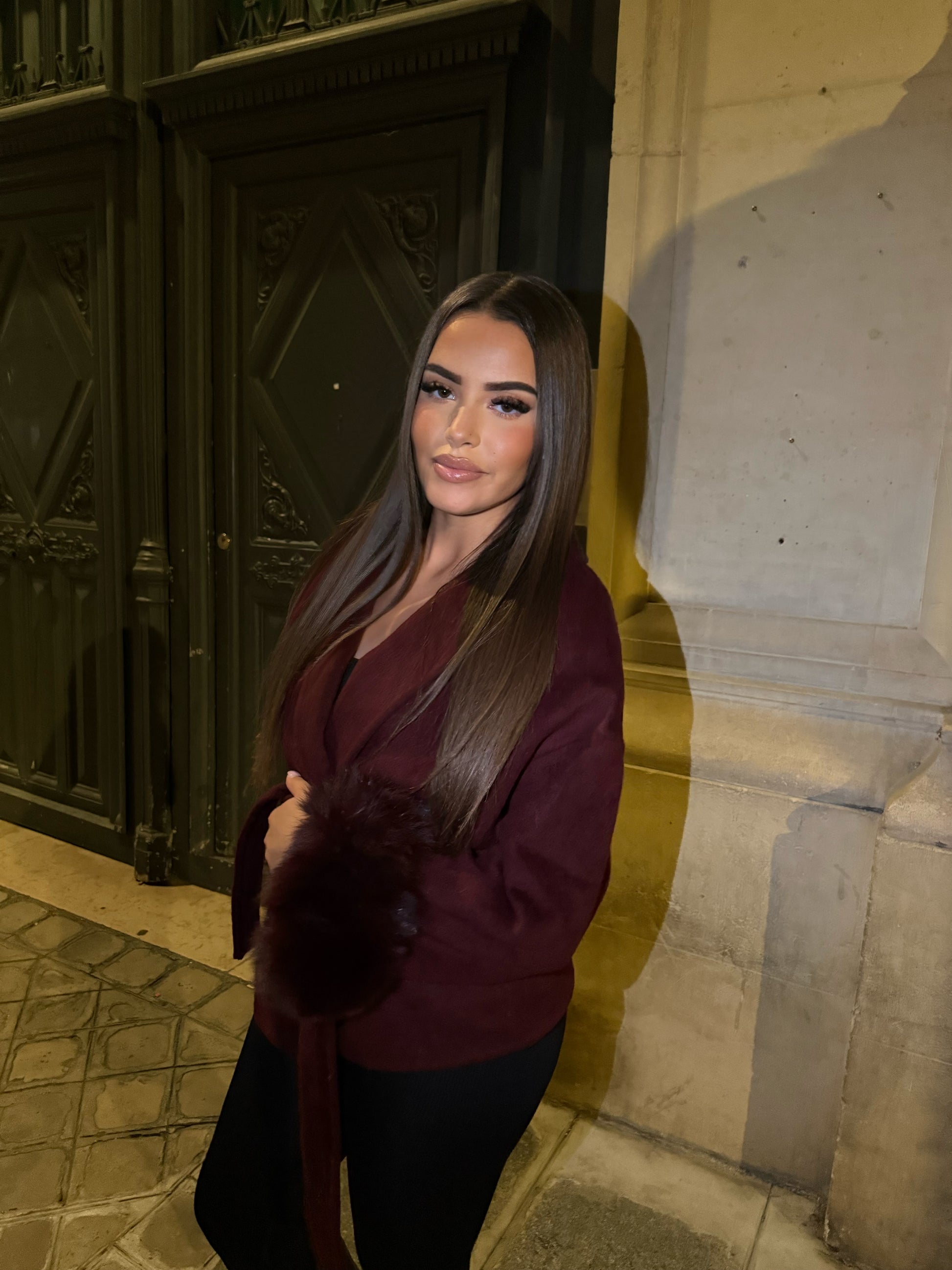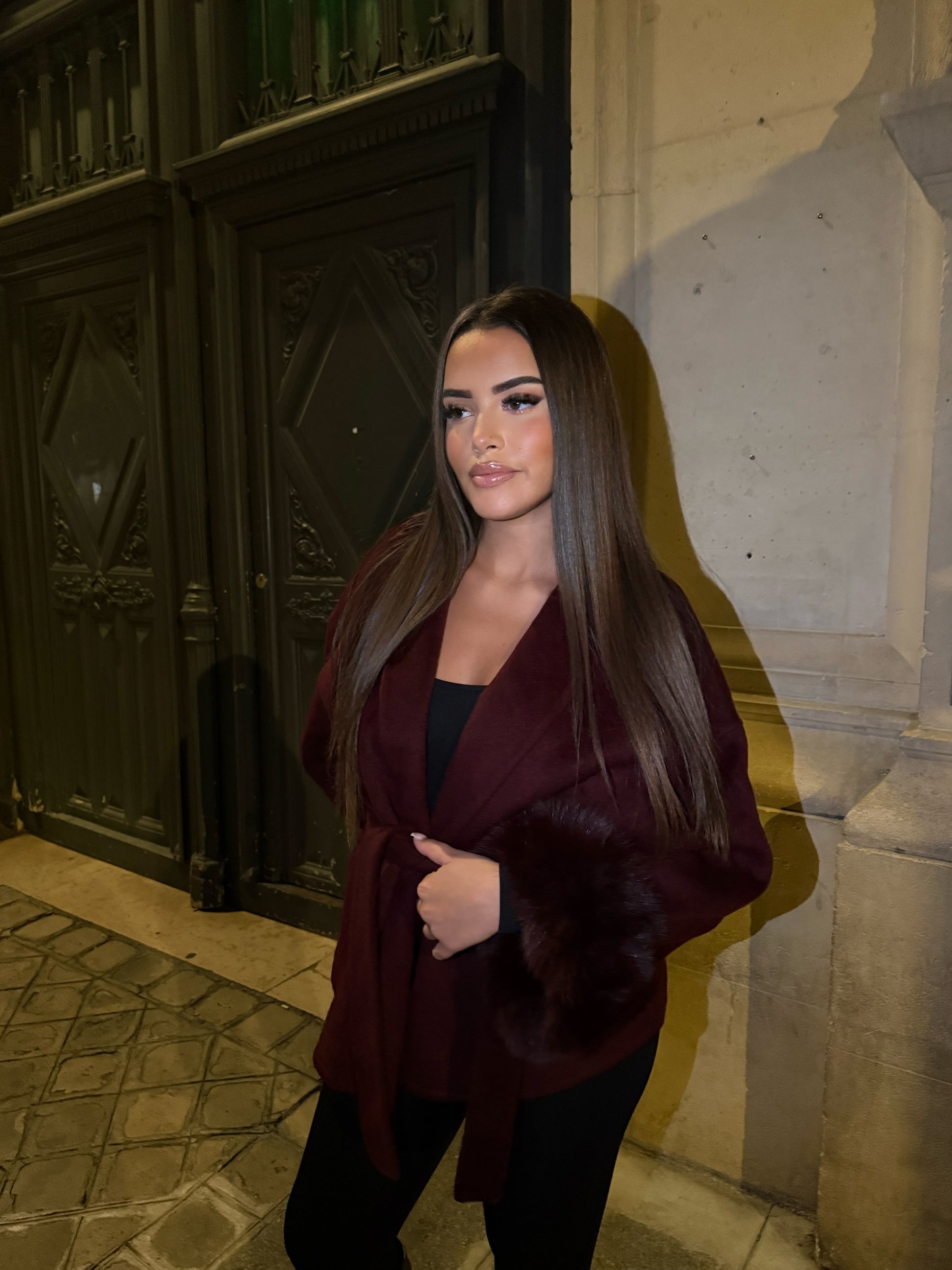 • Détails en fourrure : Des manches en fourrure qui ajoutent une touche de glamour.