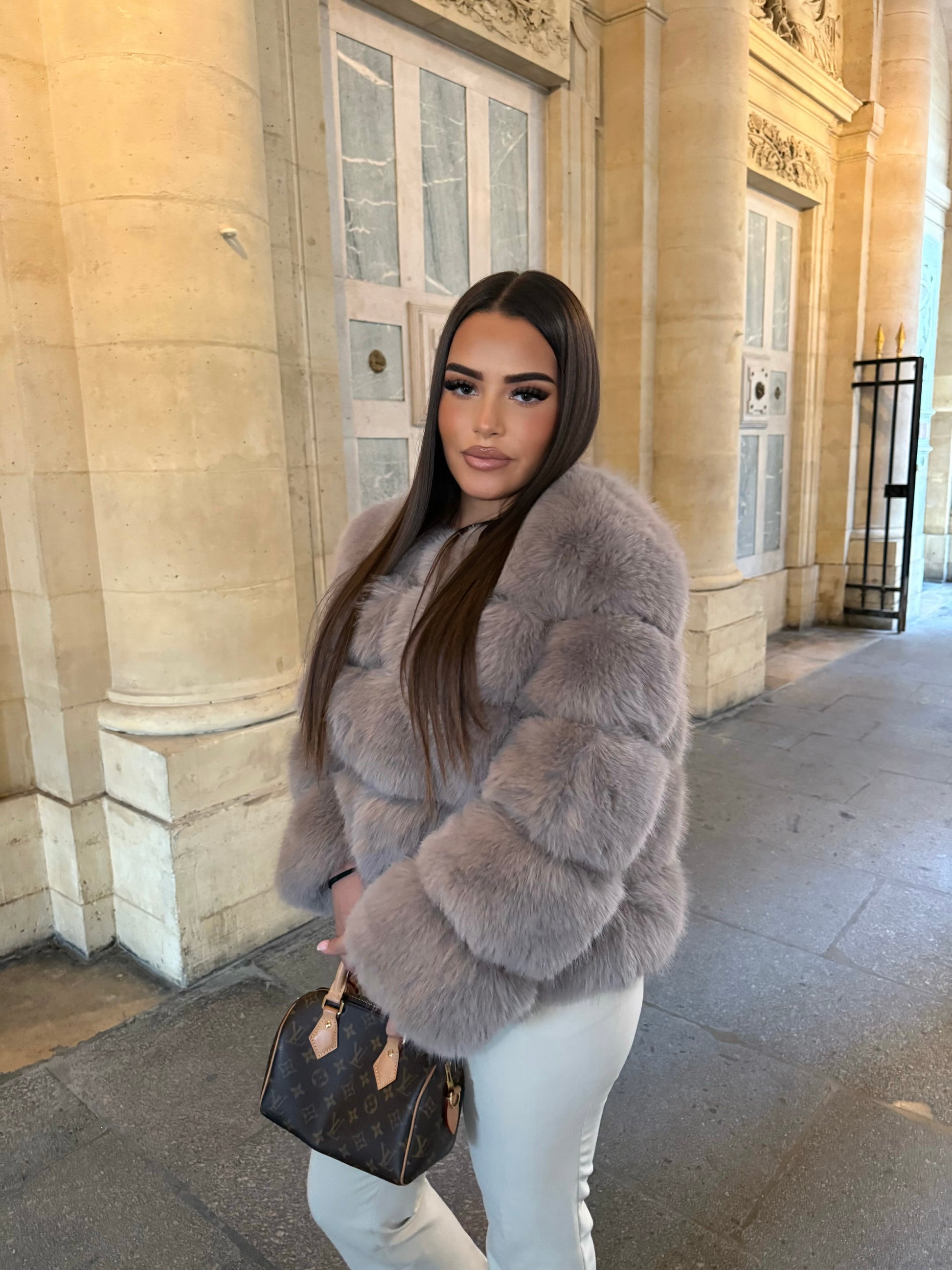 In this case, the model is wearing size 4XL, and is 1m72 tall and weighs 60kg. The sleeve length is 63cm in 4XL, compared to the Russian Fur basic model which has 54cm sleeve length.